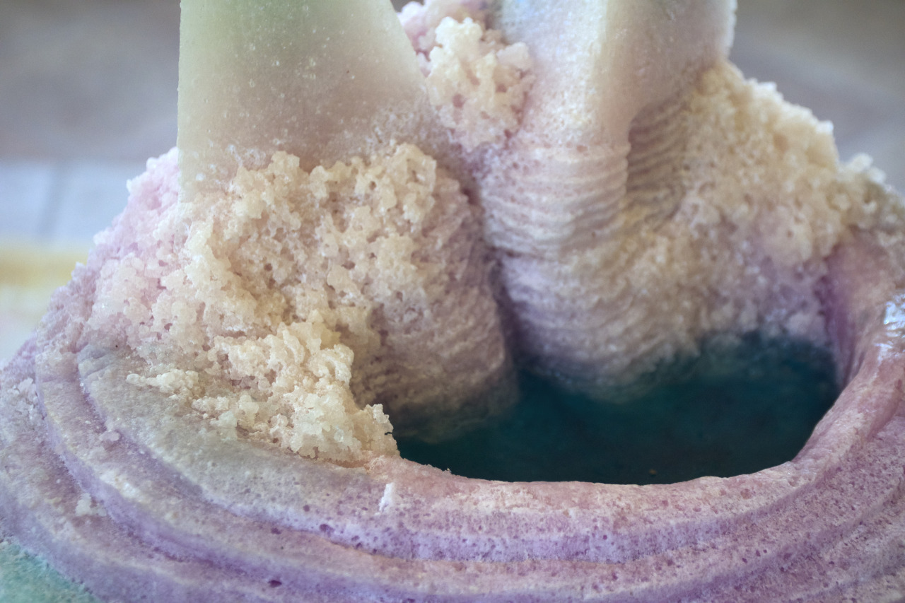 Resin, salt, pigments, glucose, found objects, variable dimensions – 2018